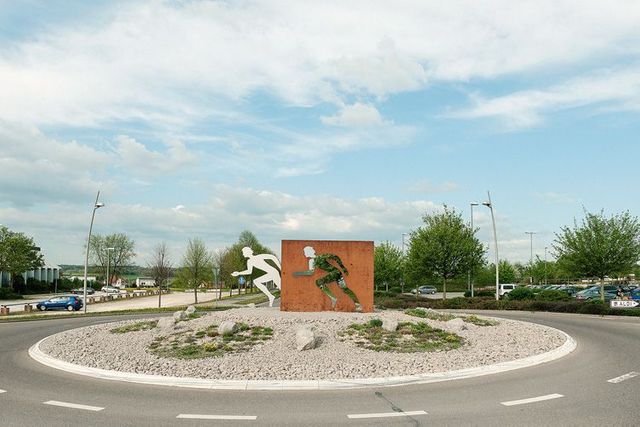 Umso rätselhafter bleibt häufig ihre Botschaft. Es ist nachvollziehbar, dass eine Treibscheibe an den Kali-Bergbau in Neustadt erinnern soll. Ebenso leicht zu verstehen: Die Kurbelwelle im Kreisverkehr von Wasseralfingen verweist auf das nahe Werk eines weltweit tätigen Herstellers von Schiffsschrauben. Geradezu zwangsläufig erscheint, dass in Dillingen ein Werk von Richard Serra steht: Der amerikanische Bildhauer verwendet für seine Großskulpturen überwiegend Bleche der Dillinger Hütte und ließ viele seiner Werke dort auch fertigen.