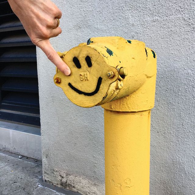 Wie häufig bei gutem Design besteht das Kunststück darin, möglichst wenig zu machen. Smileys sind eine vielsagende, maximale Reduktion, jeder kann eines herstellen. Der gelbe Untergrund hat bei der Verbreitung sicher geholfen, Gelb macht gute Laune. Ein Smiley ist ein Gesicht in der Sonne, Ausdruck von kindlichem Optimismus. Kein Wunder, dass die Hippies es neben dem Peace-Zeichen als Symbol für sich reklamierten, auch wenn sie damals eher nicht zur Kernzielgruppe der Lebensversicherer zählten.