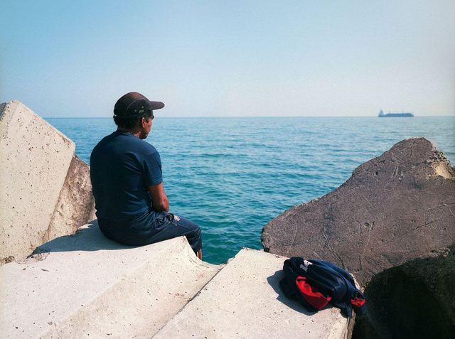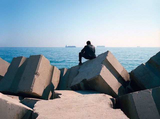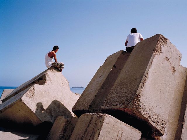»In Algier, in der Nähe von Bab el Oued, gibt es einen Strand, den Jugendliche Rochers Carrés nennen. Er wurde in den Siebzigerjahren unter dem algerischen Präsidenten Houari Boumedienne errichtet und besteht aus vielen Betonblöcken, die als Wellenbrecher eingesetzt werden. Diese Steine sind riesig, vier Meter breit und drei Meter lang. Als Kind habe ich meine Sommerferien immer in Bab el Oued verbracht. Das Viertel gehört zu den ärmsten von Algier, die Jugendlichen hängen rum, kiffen, manche fischen ein bisschen, andere prostituieren sich. Vor allem aber sitzen sie stundenlang auf diesen Betonblöcken und starren aufs Meer, als seien sie von den vielen Schiffen hypnotisiert, die ganz langsam zwischen Algerien und Europa hin- und herfahren.
