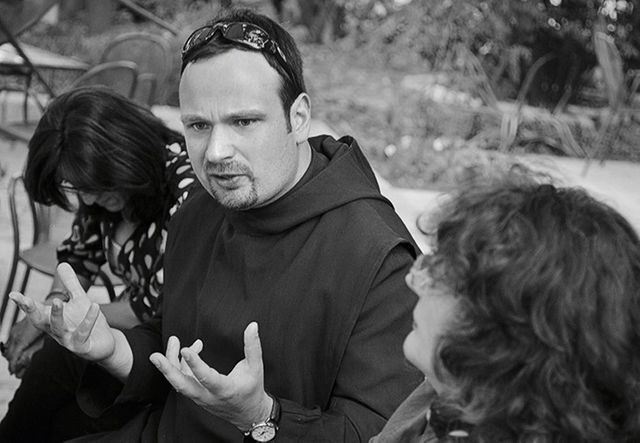 16.20 Uhr. Ein Mann in brauner Mönchskutte eilt in den Garten. Er trägt eine Sonnenbrille wie Keanu Reeves in »Matrix«, setzt sich, bestellt Wasser: Bruder Nikodemus von der Dormitio-Abtei auf dem Zionsberg.