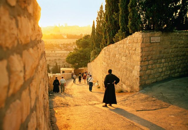 Nikodemus: Noch ein Beispiel. Gestern ist eine unserer Mitarbeiterinnen gestorben. Und wir Mönche sind zusammen mit unseren muslimischen und jüdischen Mitarbeitern zum Haus ihrer Familie gepilgert, um gemeinsam zu trauern. Auch das ist Jerusalem, aber diese Geschichten bringen kein Geld und keine Aufmerksamkeit, deswegen werden sie nicht erzählt. Die Menschen drücken lieber auf ihren MP3-Player und spielen die ewige Erzählung vom Konflikt ab.