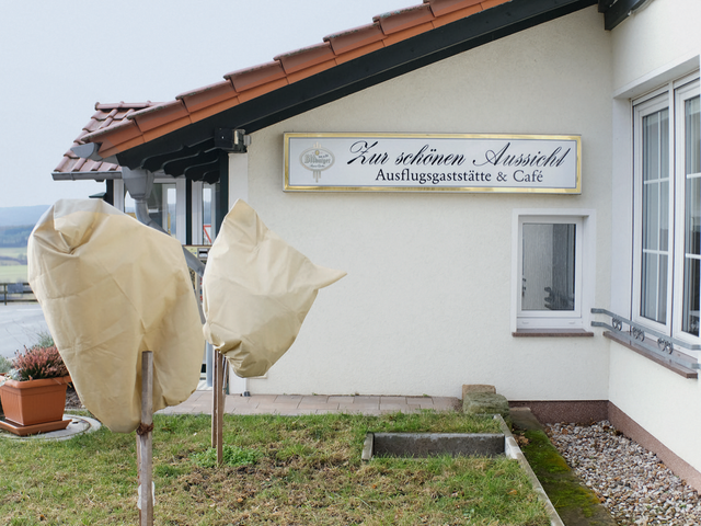 75 »Schöne Aussichten« hat Grabowski innerhalb von neun Jahren quer durch die Bundesrepublik verteilt entdeckt: Pensionen, Gasthäuser, Campingplätze, Restaurants, Hotels, Cafés oder Kleingärten. Oft verwaist oder geschlossen. Die Bilder erzählen eine Geschichte über Deutschlands Provinz.