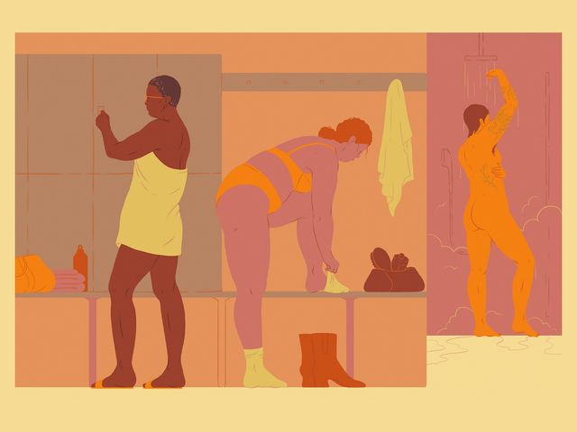 Einer der größten Vorteile davon, dass ich nun erwachsen bin: nie mehr Geräteturnen. Ein Nachteil: dass ich manche Dinge nur durch Schmerzen lerne. Nach etlichen Tiefs und Rückenbeschwerden kam ich zur Einsicht, dass es mir besser geht, wenn ich mich regelmäßig bewege. Und so habe ich auch die Umkleideräume lieben gelernt. Nirgendwo sonst erlebe ich fremde Leiber so nah: groß, klein, asymmetrisch, runzelig, krumm, pickelig, vernarbt, tätowiert. Fast jeder Mensch ist mit diesem oder jenem Körperteil unzufrieden, ich auch. Doch erschien im Spiegel des Zumba-Kurses noch jede Falte übergroß, so ist sie in der Umkleide bloß noch eine unter vielen. Wer sich nur mit kuratierten und retuschierten Körpern beschäftigt, die es außerhalb von Umkleideräumen (und besonders innerhalb sozialer Medien) massenhaft zu geben scheint, verliert ja völlig den Maßstab. In den Sportumkleiden ist alles ungeschönt, jeder gleich schwitzig, die teuerste Wimperntusche verschmiert und jeder Körper ist ausgeleuchtet durch Neonröhrenlicht.