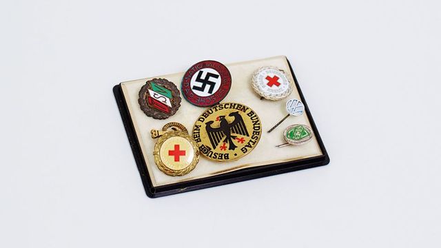 Zu den dokumentierten Gegenständen des Ehepaars Hillwig gehört auch eine Anstecknadel der NSDAP. Günter war Mitglied der Hitler-Jugend und Nachrichtenoffizier in der Wehrmacht. Diese Anstecknadel, warum und mit welchen Gefühlen Günter sie auch immer aufbewahrt haben mag, ruht gleichberechtigt neben anderen Anstecknadeln auf einem Wattekissen, eine erinnert an einen Besuch im Deutschen Bundestag. Anneliese war offensichtlich weniger offiziell unterwegs, ihr dienten zum Anstecken schmückende Broschen, die sie in einer leer gegessenen Marzipanschachtel aufhob. Ihre Perlenkette hatte in einer Plastikmuschel einen Ehrenplatz. Ob sie sie mal auf einer ihrer vielen Reisen trug, nach Budapest etwa, nach Norwegen oder Marokko? Und wie oft mag Günter seine geblümte Fliege der traditionsreichen Krefelder Marke Jacques Ploenes aus der Originalschachtel genommen und sich um den Hals gelegt haben? Man hört ihn beinahe aus dem Schlafzimmer rufen: »Anneliese, wo sind meine guten Schuhe?«