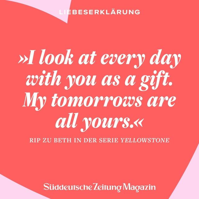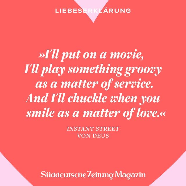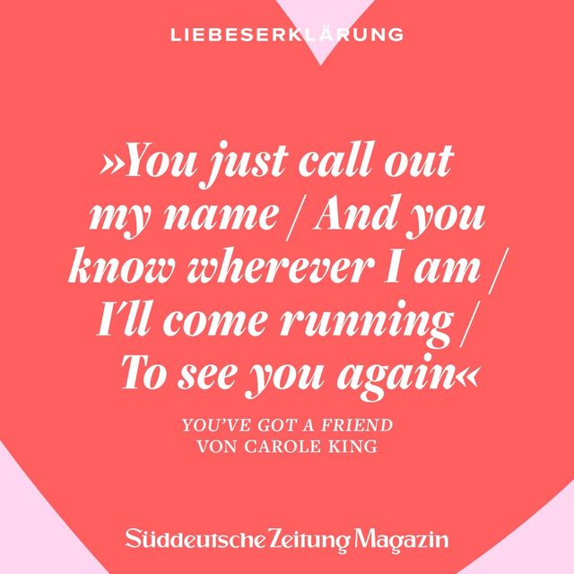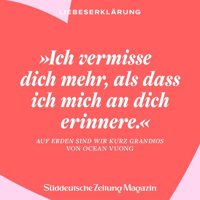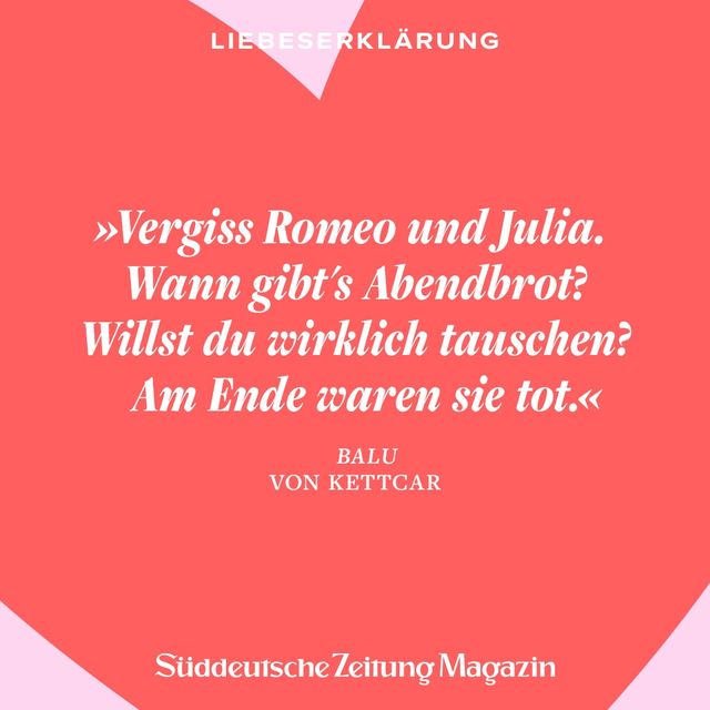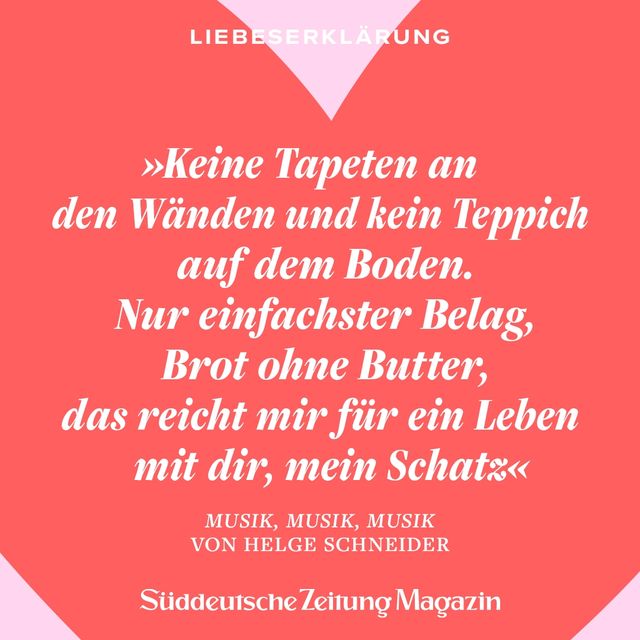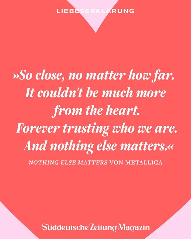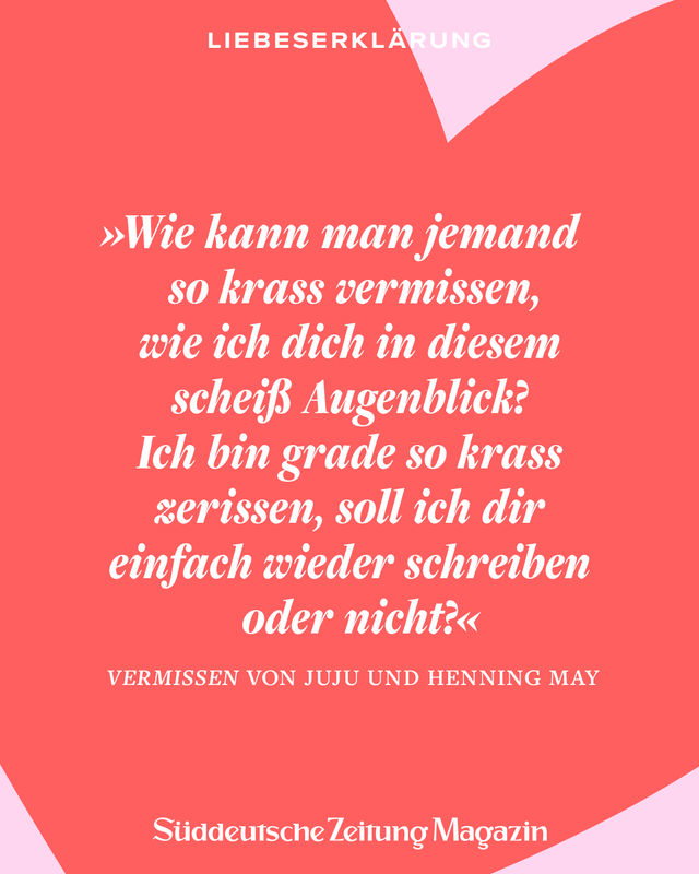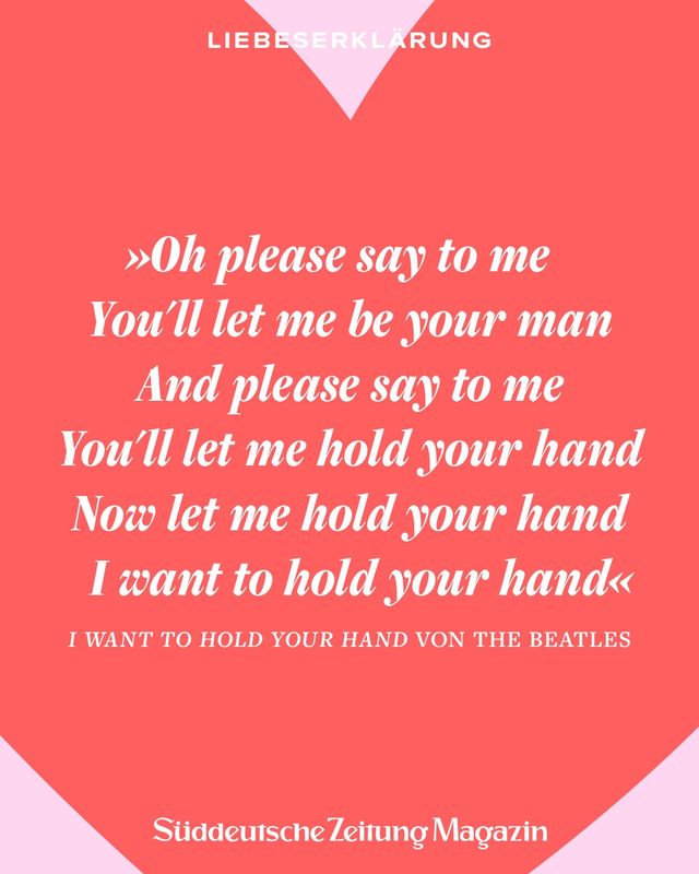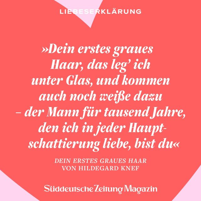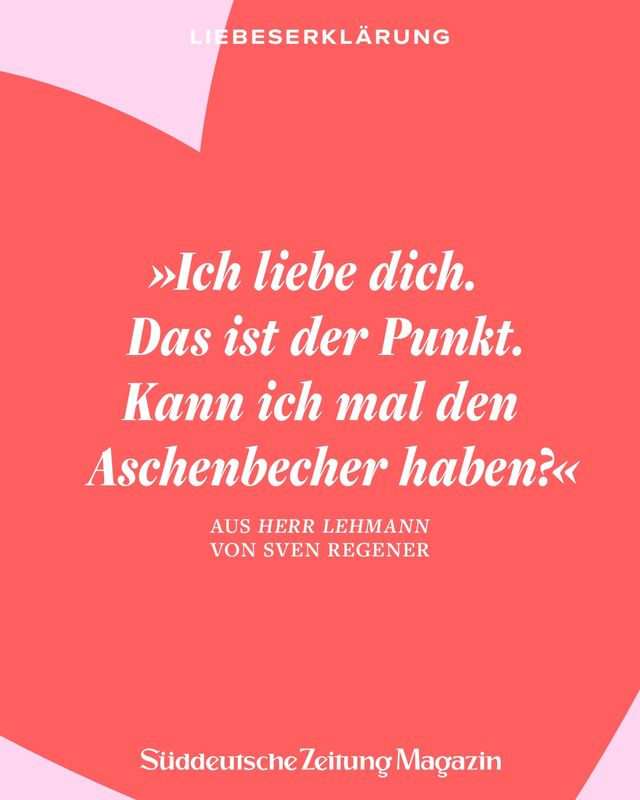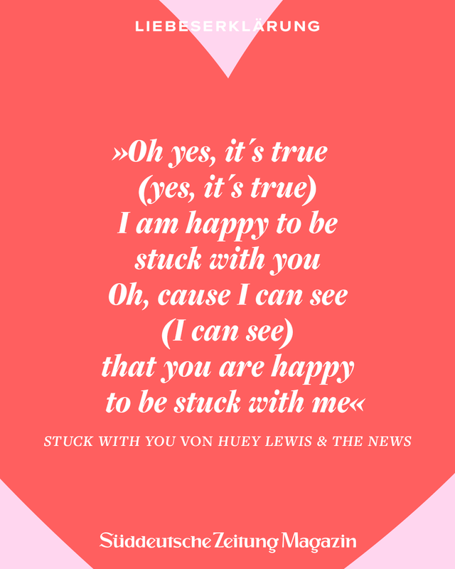 Jeden Sonntag finden Sie eine neue Liebeserklärung in unserem Newsletter »Alles Liebe«, außerdem Geschichten, Interviews und Essays über Beziehung, Dating und Sex. Und wenn Sie eine Liebeszeile kennen, die Ihnen ein warmes Gefühl bereitet, können Sie an allesliebe@sz-magazin.de schreiben.