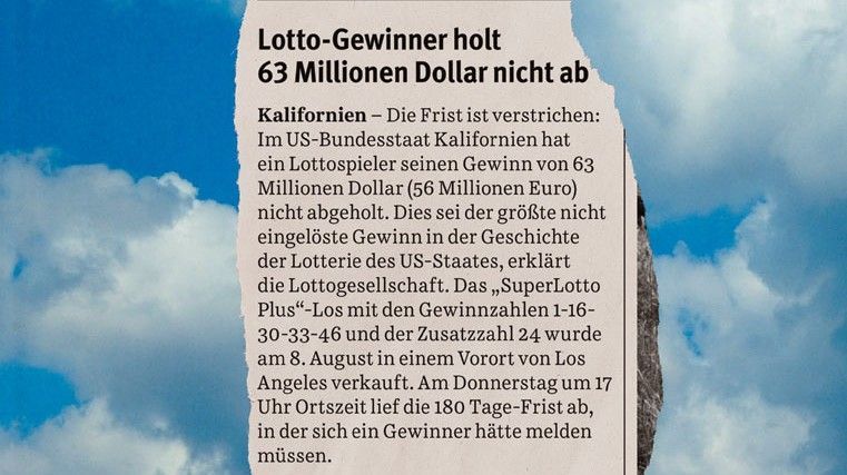 Ein Lottogewinner in Kalifornien holt seinen Gewinn nicht ab. 63 Millionen Dollar. Wie kann so etwas passieren? Und was kann man daraus machen? Den Gewinner wird man nicht finden, sonst hätte er sich ja gemeldet. So saßen wir in der Themenkonferenz und grübelten. Nach einer Weile war klar, journalistisch ist da wenig drin. Aber Fantasien dazu hatten wir sofort. Warum nicht fiktive Geschichten? Von Schriftstellern, nicht von Journalisten.