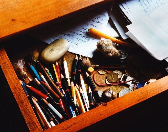 Auch im Inneren ist das Haus weniger eingerichtet als »ausgerichtet auf das Draußen, zum Freien hin, zum Offenen«, wie Peter Hamm das kunstvoll arrangierte Chaos freundlich umschreibt. Überall verteilt finden sich Dinge, die Handke von seinen Wanderungen mitbringt: Steine, Blumen und Vogelfedern, der verkohlte Holzkloben, auf dem Handke saß, als er seinen Roman Mein Jahr in der Niemandsbucht schrieb. Zahllose Wanderstöcke stecken in einem geborstenen Korb an der Haustür, Schnürsenkel und Bindfäden wimmeln neben einer Strohblume in einer Schale, Bleistiftstummel mengen sich unter Beeren, Münzen und Kristalle. Und auf den Tischen: Teller und Schüsseln mit selbst gepflückten Pilzen, Nüssen und Früchten aus Wald und Garten, mit denen der Hausherr seine wenigen Gäste bewirtet.