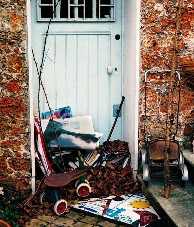Die in Paris lebende Fotografin ist eine der wenigen, denen der österreichische Schriftsteller Zutritt gewährt. Über Jahre hat sie den kamerascheuen Autor meist sonntags besucht, um ihn aus verschiedenen Anlässen zu porträtieren, und irgendwann angefangen, auch im Haus und im Garten zu fotografieren. Die Aufnahmen, die dabei zwischen 1994 und 2008 entstanden sind, zeigen einen Künstler, der Wert darauf legt, auf geheimnisvolle Weise in den Dingen anwesend zu sein, mit denen er sich umgibt. Und das sind nicht wenige. Der Literatur-Messias, so der Eindruck, ist eben auch ein ziemlicher Messie, der sich von nichts trennen kann. So verrotten das Dreirad und der Plastikball von Handkes Kind, das längst erwachsen ist, genauso im Garten wie das ausrangierte Faxgerät beim Kompost. Es wirkt, als sollten vergangene Lebensabschnitte eingehen in den Kreislauf der Natur.