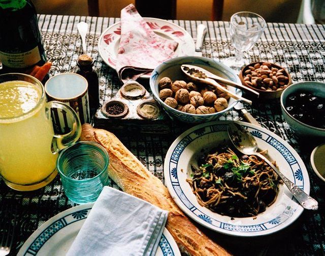 Diese Mahlzeiten zelebrieren in ihrer rustikalen Raffinesse genauso das einfache Leben und den Anti-Modernismus wie die unzähligen Bleistifte und Notizhefte, Handkes bevorzugte Schreibutensilien. Die Geste scheint in diesen heiligen Hallen mindestens so wichtig zu sein wie die Sache selbst. Das Ganze hat bei aller Beiläufigkeit etwas Inszeniertes und Ausgestelltes. Handke scheint in seinem Mikrokosmos Stillleben zu arrangieren, die sein Haus in eine Art Naturalienkabinett verwandeln, ein Museum der Vergänglichkeit. Jedes Gebinde ein kleiner Hausaltar. Selbst die Gebrauchsgegenstände sehen aus, als hätten sie lange draußen gelegen, Wind und Wetter preisgegeben, damit sie Patina bekommen. Die Bücher und Magazine, scheinbar achtlos auf Stühlen, Treppenstufen und in Mauernischen gestapelt, zeigen Spuren der Verwitterung, da sie meist im Freien gelesen wurden. Aber ob Handke wirklich die arabische Zeitung liest, die auf seinem Küchentisch liegt? Die Ornamentik der Schriftzeichen ist jedenfalls äußerst dekorativ.