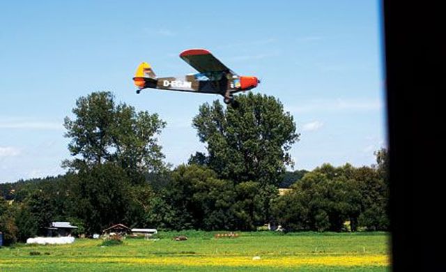 Obwohl ich eigentlich keine Flugangst habe, also: nicht generell. Wenn mich eine Boeing 767 nach London bringt, nach Marokko oder nach Amerika, ist das okay für mich. Da steckt neueste Technik drin. Das Flugzeug, das meinem Vater und fünf seiner Freunde gehört, ist ein Oldtimer. Eine Piper PA-18-150 Super Cub aus dem Jahr 1951, ein Zweisitzer, vorn einer, hinten einer, wie in den Heinz-Rühmann-Filmen, Quax, der Bruchpilot, mit Steuerknüppeln zwischen den Beinen. Seit 1951 hat die Wissenschaft enorm dazugelernt, was das Fliegen angeht, Menschen waren auf dem Mond und sind heil zurückgekommen, dafür wurden modernste Materialien entwickelt. Die Außenhaut der Piper besteht aus Leinen.