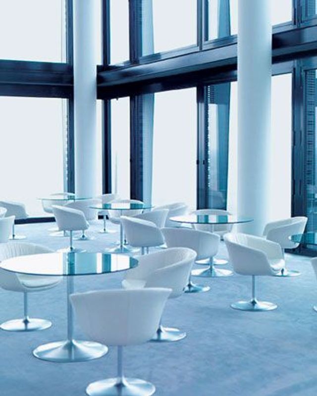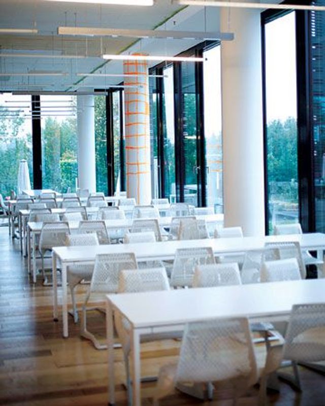 Also: Kantine?! Sie sagen immer noch so, hier. Dabei kann man sogar draußen sitzen, auf einer prima gefegten Terrasse vor dem Hochhaus, wie auf einer künstlichen Insel, aufgeschüttet in einem Meer von Fachbetrieben.