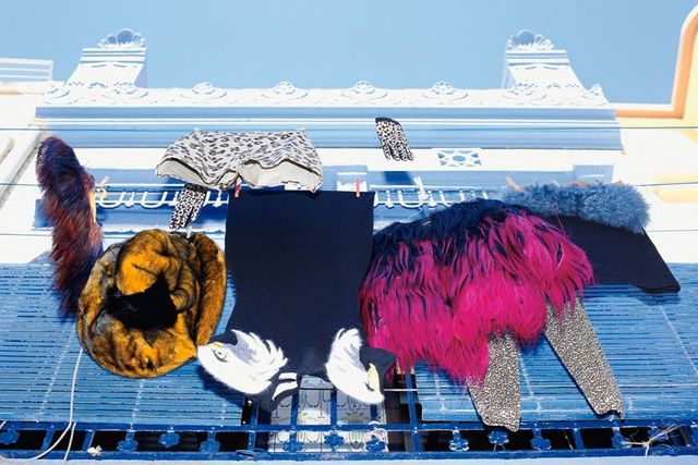 Wie es euch gefellt. Von links: Fellbolero: Lie Sang Bong; Fellhut: Marc Jacobs; Handschuhe: Emporio Armani; Shorts mit Leopardenmuster: A.P.C.; Strickkleid: JC de Castelbajac; Felljacke: Giorgio Armani; Hose: H & M; Rock mit Fellschößchen: Acne.