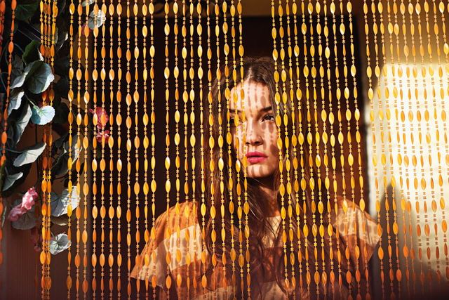 ZONA TORTONA Perlenvorhänge klimpern hübsch im Wind und verhindern, dass Insekten ins Haus fliegen. Sie signalisieren aber auch: Diese Tür steht immer offen. Den Italienern geht schließlich nichts über »la famiglia«, was gern auf die ganze Nachbarschaft ausgeweitet wird. In Mailands ehemaligem Arbeiterviertel Zona Tortona hängen die Vorhänge in vielen Eingängen. Früher saßen dahinter auch mal Kleinkriminelle. Dann kam Giorgio Armani und baute hier sein Hauptquartier. Heute ist die Gegend ein Szeneviertel - und hinter den Vorhängen philosophieren junge Kreative mit Alteingesessenen, wie Kunst und Design die Welt verändern können. Velourslederkleid: Chloé; Gürtel: Aigner; Sandalen: Ferragamo; Armband: Vintage.
