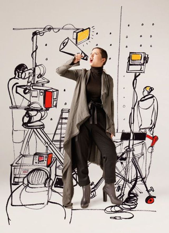 Mariko Minoguchi, Regisseurin, 22 Jahre: In 20 Jahren bin ich eine erfolgreiche, starke Regisseurin und lebe mit meinen zwei Kindern und meinem Mann in einer großen Altbauwohnung in München. Weil mein Mann und ich viel arbeiten, kümmern sich oft meine Eltern um die Kinder. Haben wir frei, sind das gleich drei Monate am Stück. Wir packen die Kinder dann ein und reisen mit ihnen nach Neuseeland, Asien und Südamerika, lernen fremde Kulturen kennen und drehen kleine Stop-Motion-Filme zusammen. Mariko in einem grauen Mantel von Garth Pugh und einem Rollkragenpullover von Armani Jeans; Hose mit Schleife, von Hugo; Stiefeletten von Hermès.