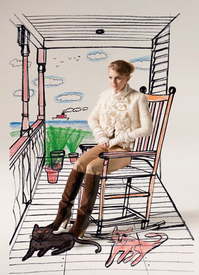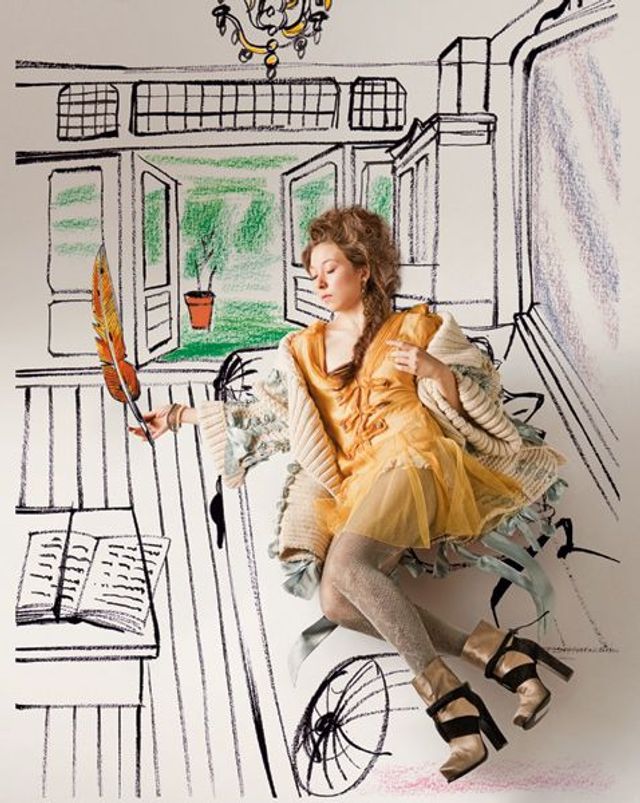 Jenny-Mai Nuyen, Fantasy-Autorin, 22 Jahre: Wenn ich älter bin, lebe ich gemeinsam mit meiner besten Freundin, unseren Männern und meinem Sohn in einem viktorianischen Anwesen, nahe einer großen Stadt. Ich bewohne den Ostflügel, meine Freundin den Westflügel und die Männer mit den Kindern das Mittelgebäude. Ich habe zu diesem Zeitpunkt ein furchtbar dramatisches Leben gelebt, den Nobelpreis für Literatur gewonnen und genügend Stoff für weitere Romane gesammelt. Diese schreibe ich nachts vor dem Kamin. Jenny-Mai trägt ein Kleid von Galliano zu Strickjacke und Spitzenhöschen von Christian Dior; Ohrringe und Schuhe von Etro; Srumpfhose von Wolford; Armreif von D&G Jewels.