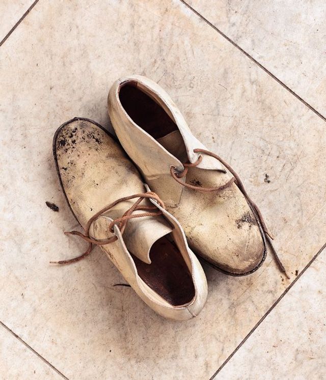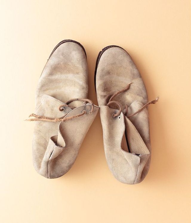 Spätestens seit den ersten Schritten der Menschheit auf dem Mond wissen wir, dass sich ein abenteuerliches Leben auch durch die Fußspuren manifestieren kann, die es hinterlässt. Im Idealfall hat das Leben wiederum an den Schuhen, mit denen diese Abenteuer unternommen werden, seine Spuren hinterlassen. Vielleicht ist das der Grund, warum uns der Neuzustand von Schuhen in solche Verzweiflung treiben kann. Ein perfekt mit Spucke und öliger Paste polierter Lederstiefel mag einen Auftritt von vollendeter Eleganz garantieren. Wenn aber unter der glänzenden Oberfläche die vernarbte Landkarte der Erfahrung fehlt, bleibt sein Glanz blass. Denn nur im Schuh, der seinen Träger durch dick und dünn getragen hat, können wir lesen wie in einem Gesicht, wo Reisenarben und Falten der Erkenntnis das entstehen lassen, was man Charakter nennt.