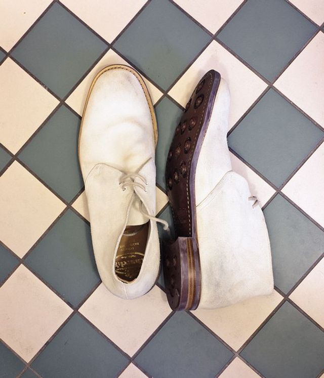 Die Magie eines solchen Schuhs beginnt dort, wo er sich, mehrfach neu besohlt und mit Eisen beschlagen, in ein philosophisches Vehikel der Erinnerung an die Abenteuer verwandelt, die wir mit ihm erlebt haben. Aber das muss man erst lernen. Als ich während des Studiums in Heidelberg mein erstes Paar Alden-Schuhe frisch aus New England eintragen wollte, überraschte mich auf dem kurzen Weg zur Vorlesung ein Wolkenbruch. Das Leder der unimprägnierten Schuhe verzog sich im Nu zu einer pockennarbigen Fratze. Meine Verzweiflung war so groß, dass ich das Paar nie wieder trug. Dabei war die Fahrradfahrt im Regen so etwas wie ein Initiationsritual, das den Schuhen die Sporen gab, die sie dringend brauchten. Ich hatte es nur nicht sofort verstanden. Erst später im Leben lernen wir, dass selbst die teuersten rahmengenähten Budapester nichts wert sind, wenn wir in ihnen nicht aus dem Parkett des Alltags ausbrechen und in die Welt hinausgehen, als wären es Siebenmeilenstiefel.