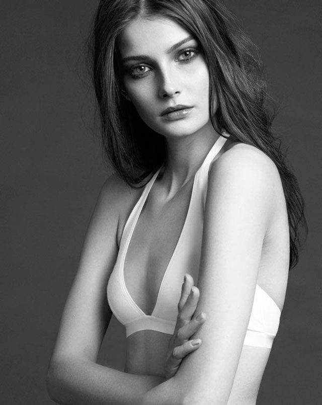 Naja, wo stehen denn da die Hüftknochen heraus? Unser Model ist eine zierliche Frau mit 75A, und stark retuschiert ist sie auch nicht. Uns war es wichtig, dass unser Model nicht so wahnsinnig jung aussieht, am liebsten hätten wir Christy Turlington gebucht, aber die können wir uns eben nicht leisten.