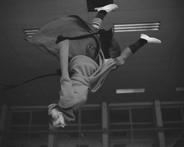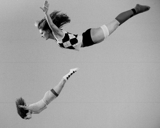 Wir haben Synchron-Trampolinspringerinnen mit der Mode der Saison ausgestattet. Ein bisschen darf man ja abheben.