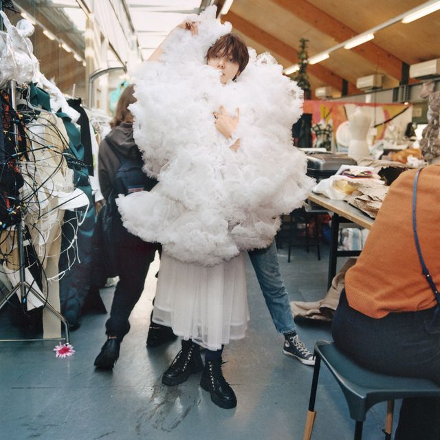 Die Professoren reagieren so, wie die Presse reagieren würde. Wenn sie überhaupt reagieren würde. Denn wenn die Kollektion nicht eine gewisse Glaubwürdigkeit hat, wird sie nicht als Mode wahrgenommen. Sie wäre zu unspezifisch. Aber die Tutoren erkennen ein starkes Modestatement, und das holen sie aus uns raus.