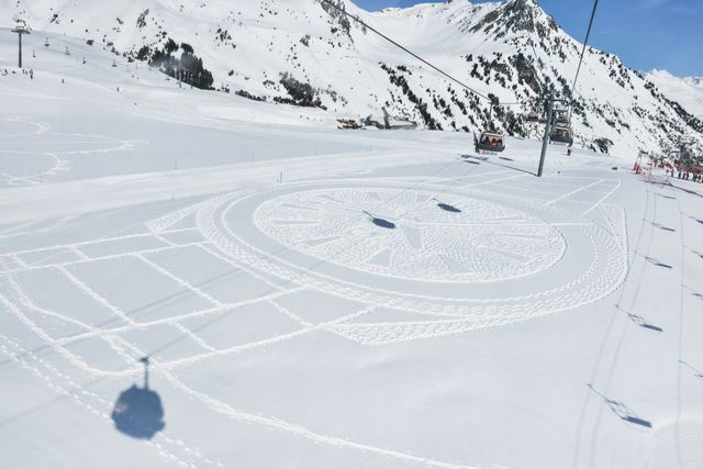 Doch dann spricht man mit Simon Beck über seine Schneebilder und hört ihn am Telefon lachen: »Nein, mit Technik hat das nichts zu tun!« Seine Bilder entstehen ganz analog, er braucht dafür nur einen Kompass, eine Skizze – und viel Zeit.
