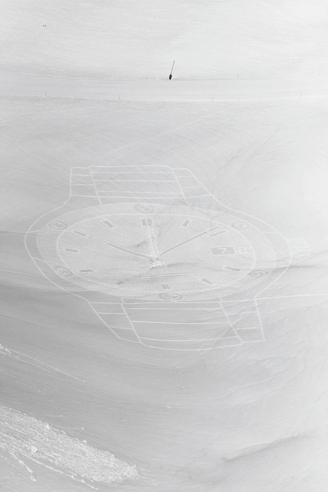 Die Uhren auf diesen Seiten hat er exklusiv für das SZ-Magazin in den Schnee getreten. Und die Motive passen sehr gut zu seiner Technik. Ein still stehender Zeiger, ein eingefrorener Moment, der doch so vergänglich ist – denn nach einer neuschneereichen Nacht sind seine Bilder wieder verschwunden.