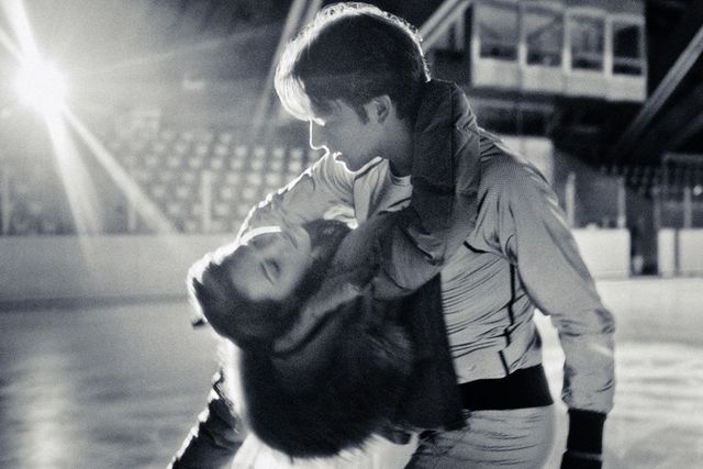 Beim Eistanzen kommt es nicht auf gewagte Sprünge an. Sondern auf weiche Linien, präzise Hebefiguren und, wie man sieht: Leidenschaft. Zopfpullover: Belstaff, Hose: Craft über sport-schuster.de.