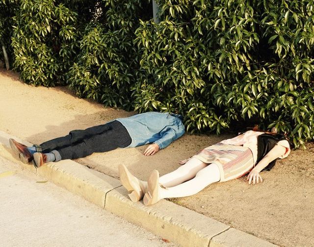 Diese Kleider hauen uns um! Links: Jeanshemd: 5Preview, Hose: Cos, Socken: Henrik Vibskov, Herrenschnürschuhe von Church’s über mrporter.com. Rechts: Lederweste: 5Preview, T-Shirt: Chanel über riceandbeansvintage.com, Strickrock: Escada, Strumpfhose: Fogal, Schuhe: Henrik Vibskov.