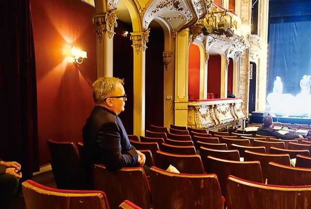 Berliner Ensemble, Zuschauerraum. Gerade wird eine Szene geprobt, zu der lahme Synthie-Akkorde dröhnen. Grönemeyer weist sofort darauf hin, dass ausgerechnet die Musik gerade nicht von ihm ist, da will er noch was nachliefern. Er fragt Wilson: »May I offer you another piece of music for this scene?« Der große alte Wilson, umringt von emsigen Helfern, blättert erst ausgiebig in seinen Unterlagen, dann sagt er in gnädigem Ton, »Of course you may.« Dreizehn Millionen Platten? Nicht hier drin.