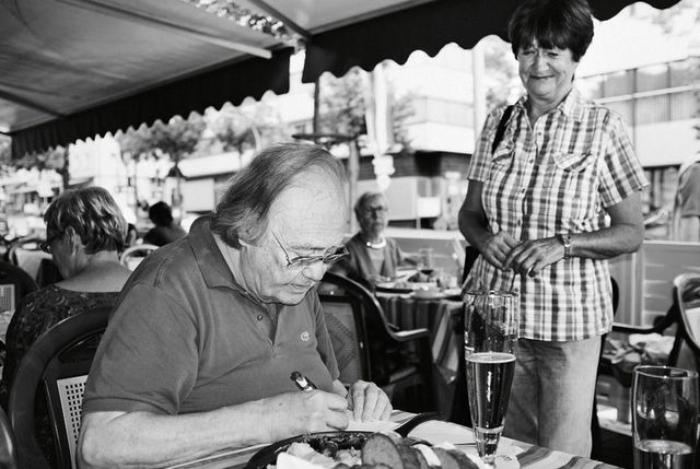 Er ist dann doch gekommen. Warum? »Ich habe einen Brunello di Montalcino entdeckt, den es nur bei Aldi Süd gibt. In Berlin habe ich nur Aldi Nord. Da habe ich gedacht, schlage ich zwei Fliegen mit einer Klappe.« Er ist mit dem Auto seines Sohnes da, morgen fährt er zurück nach Berlin. Seine eigenen Autos hat er verkauft. »Ich hab ja alles gefahren, was man fahren kann, alles. Aber wozu? Hat alles ja keinen Sinn.«