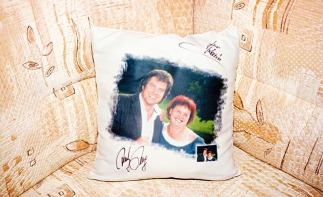 Karin Witt, die in ihrem Wohnzimmer auf einem cappuccinofarbenen Sofa sitzt, neben ihr ein Kissen mit einem aufgedruckten Foto von Andy Borg und ihr, redet gern schnell und viel und benutzt ein paar lustige Verben dafür: babbeln und quackeln und schnattern. »Wenn ich zu viel babbel, sagen Sie Bescheid«, meint sie. Ab und zu muss man nachfragen, um bei ihren Geschichten mitzukommen.