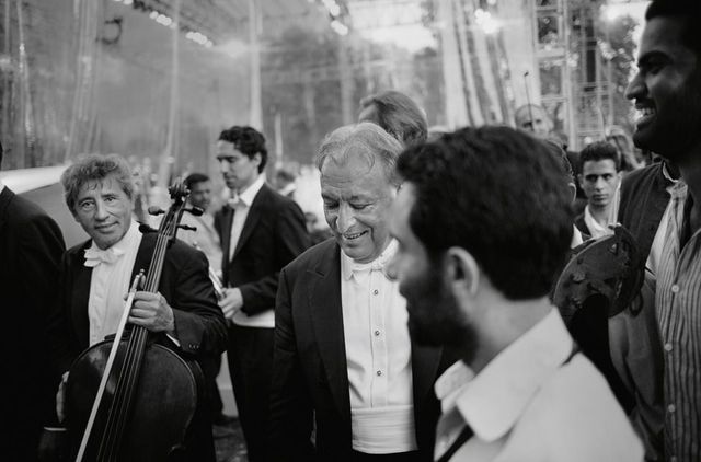Vom Flughafen werden die Musiker in Kleinbussen zu den beiden Hotels gefahren. Pro Bus zehn Personen. Nicht neun. Nicht elf. Ab jetzt wird es pingelig, weil gefährlich. Heißt es. Am besten folge man den Anweisungen, vor allem an den Straßensperren. Vorneweg, hinterher, Soldaten mit AK-47-Gewehren. Eine Drohkulisse, von der keiner weiß, wie notwendig, wie übertrieben sie ist. Manche lächeln, aber was heißt das? »No Mehta. No Israel«, steht auf einer Mauer. »Das hat mir weh getan«, sagt Mehta. »Manche denken hier, dass ich Indien verraten habe und Israeli geworden bin«, dabei stimme das gar nicht, er könne gern seinen Pass zeigen. »Von da an«, erzählt einer der Musiker später, »wussten wir, dass es unfassbar wird: unfassbar toll oder unfassbar schlimm.«