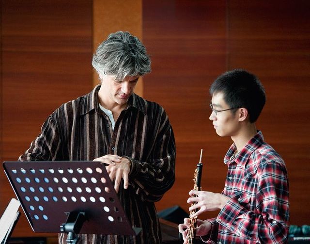Als er selber Kind war, hat er gestottert. Manchmal hat er kein Wort herausgebracht, und manchmal hört man sie noch, diese leichte Unsicherheit, wenn er nicht weich hineinrutscht in ein Wort. Er hat dann begonnen, Flöte zu spielen. »Als Therapie«, sagt er. »Da floss alles so schön.« Vierzehn war er, als er zur Oboe wechselte, dem Instrument, mit dem er aufgewachsen war, denn auch sein Vater war Oboist. »Im Grunde«, sagt Dominik Wollenweber, »lebe ich auch meine masochistische Ader aus, das Ehrgeizige, das Selbstquälerische. Wenn du Schmerzen nicht aushalten kannst, bist du in diesem Hochleistungsmusikertum verkehrt. Über die Grenze des Schmerzes hinauszugehen, dazu muss man bereit sein.« Er sagt: »Und ich war dann schon froh, dass ich auf einen Beruf zuging, in dem ich im Allgemeinen nicht reden muss.« Nun soll er reden. In der Musikhochschule in Peking, einem Hochhaus, in dem, wie einer der Dozenten dort nicht ohne Stolz sagt, in jedem Raum ein Steinway steht. Wir haben Power, heißt das, wir haben Geld. 1600 Studenten sind hier eingeschrieben, und jetzt, wo die Berliner Philharmoniker in der Stadt sind, muss es natürlich Meisterkurse geben. Einen davon soll Wollenweber halten.