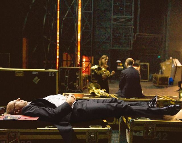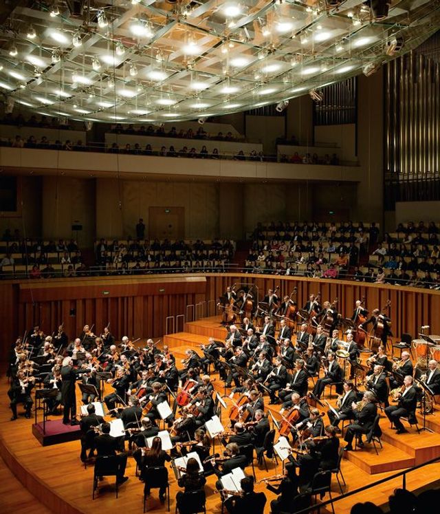 Als die Musiker das Kultur-Ufo zum ersten Mal betreten, verlaufen sich einige in den unterirdischen Gängen des Gebäudes, geistern umher zwischen Frackkisten und Toilettenräumen, laufen schließlich dem Klang nach, dahin, wo Kollegen sich einspielen, da muss es zur Bühne gehen. 1700 Menschen arbeiten im Kultur-Ufo, tausend Vorstellungen in vier Sälen laufen im Jahr, alles unter einem Dach. Selbst auf den Toiletten hängen Flachbildschirme, die die wichtigsten Aufführungen des Hauses zeigen.