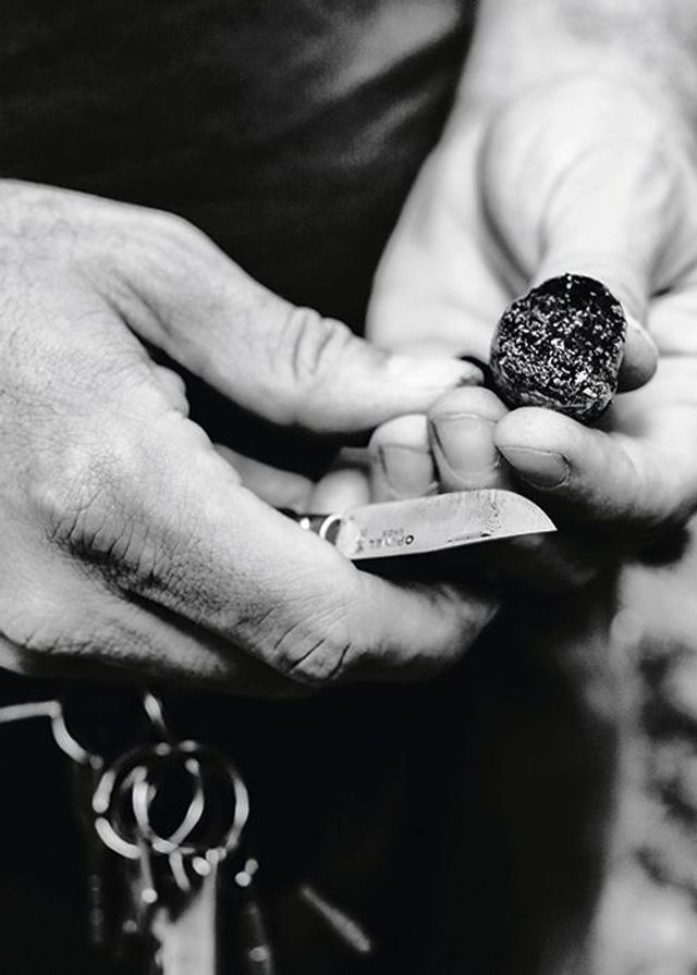In Deutschland ist Gold ziemlich allein mit seiner Leidenschaft. Es gibt kaum neue Forschung zum Thema, das einzige Standardwerk zum Trüffelvorkommen in Deutschland stammt aus dem Jahr 1891. Damals waren die Pilze auch in deutschen Küchen noch eine normale Zutat. Im 20. Jahrhundert wurden die Pilze aber zum Importgut, und die deutschen Trüffeln gerieten in Vergessenheit. Warum, ist unklar. Manche Kulturhistoriker glauben, daran könnte ein Bann der Nazis schuld sein. Ihnen sei die Trüffel nicht arisch genug gewesen, »welsche Knolle« habe man sie damals genannt. Gold bezweifelt diese Theorie. »Was aus deutschem Boden wuchs, war denen doch immer recht«, sagt er lapidar.