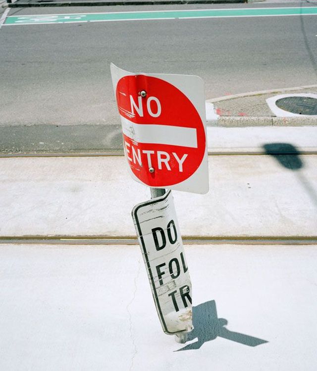 Ich hatte schon immer Interesse an den kleinen Details der Stadt, an kaputten Dingen, die eine Geschichte erzählen. Ich war wirklich überrascht, wie viele Verkehrsschilder in Australien angefahren werden. Da ist so viel Platz. Und trotzdem fahren die Menschen Schilder um. Ich habe viel in Adelaide und Melbourne fotografiert.