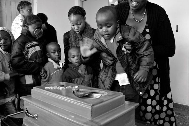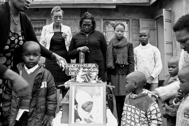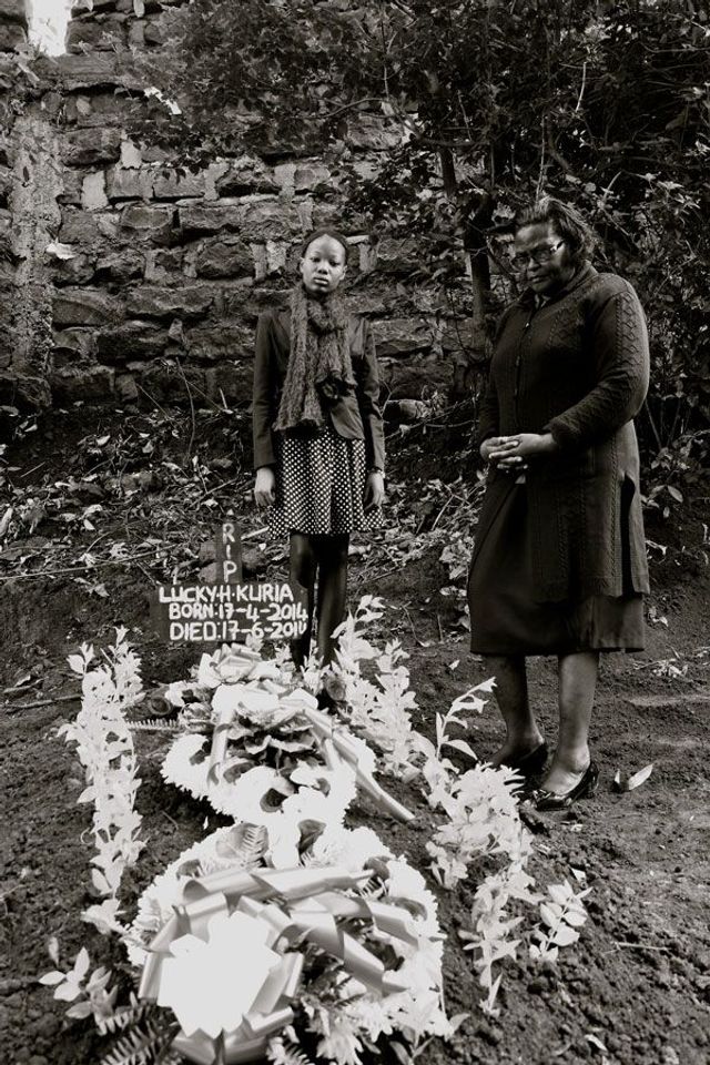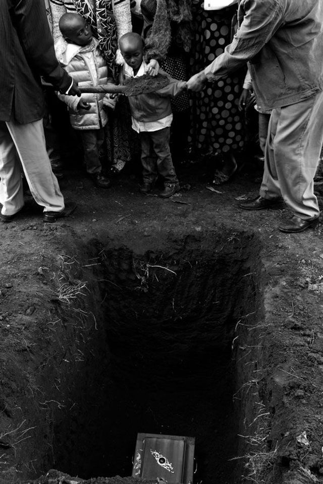 Das Begräbnis begann in einem Krankenhaus nahe Nairobi. Mama Makimei hatte einen Lastwagen gemietet, der die Kinder zur Aufbahrungshalle brachte. Am Anfang waren nur ein paar Frauen und Mama Makimei im Raum. Dann kamen die Kinder, die sich in einer Reihe aufstellten, um sich von Lucky zu verabschieden. Die Kleinsten verstanden nicht ganz, worum es ging, waren aber traurig, weil sie Mama Makimei weinen sahen. Die Älteren hingegen verabschiedeten sich der Reihe nach weinend von Lucky. Danach fand im Waisenhaus eine christliche Zeremonie statt, eine Messe wurde gehalten – man hatte Fürbitten und Gebete vorbereitet, die vorgelesen und gesungen wurden.