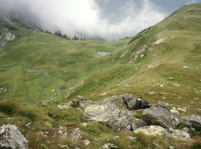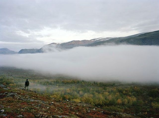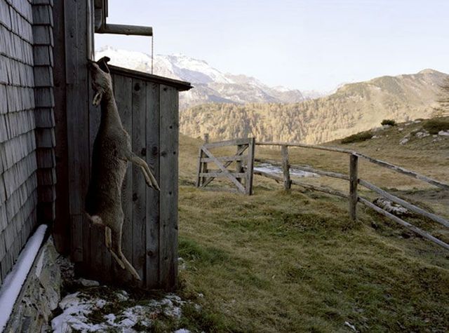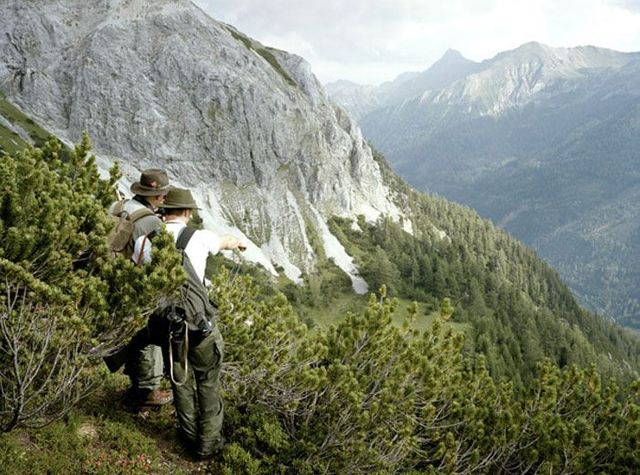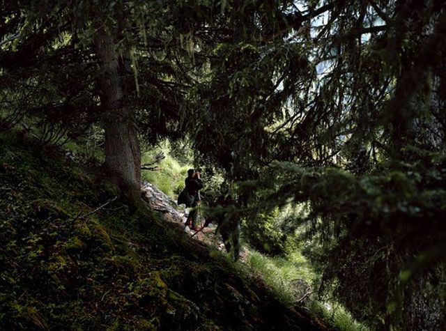 Ich war in Norwegen und Österreich unterwegs. Die Strecke ist komplett auf Film fotografiert, in Mittelformat, weil ich hinterher Handabzüge auf die herkömmliche Art in der Dunkelkammer machen wollte. Den Jägern war es vor allem wichtig, dass ich sie nicht störe und dass die Geräusche der Kamera das Wild nicht verschrecken. Sie sind also vorneweg und ich mit einigem Abstand hinterher - schon wegen der Waffen und der nötigen Sicherheit.