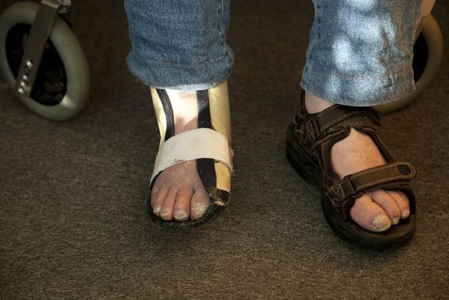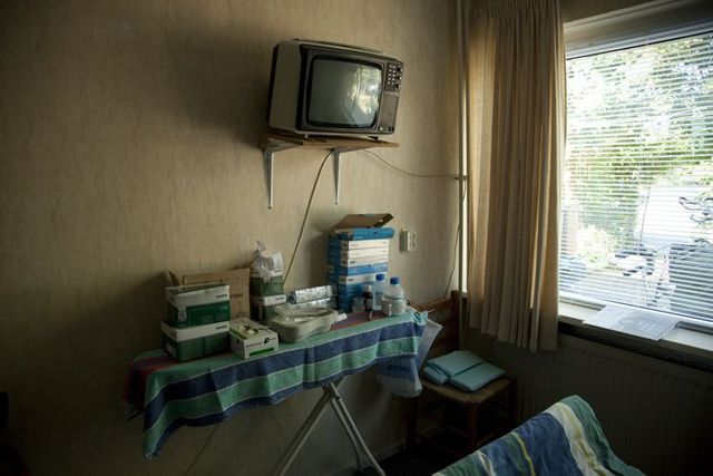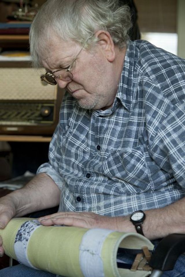 Das Projekt habe ich während der Masterarbeit angefangen, es dokumentiert das Leben meines Vaters, der gerade sein Bein verloren hat. Ich bin nicht bei meinem Vater aufgewachsen, ich dachte daher, es gäbe eine Barriere – aber es drehte sich fast um: er wollte noch mehr als ich, dass ich ihn fotografiere. Viele Menschen haben eine Hemmschwelle, wenn ihnen ein Körperteil abgenommen wird, ich finde es gut, dass er da so offen drüber redet, mit umgeht. Aber mir geht es weniger um ihn und mich, als darum, eine Tür im Betrachter zu öffnen, zu dessen eigenen Kindheitserinnerungen.