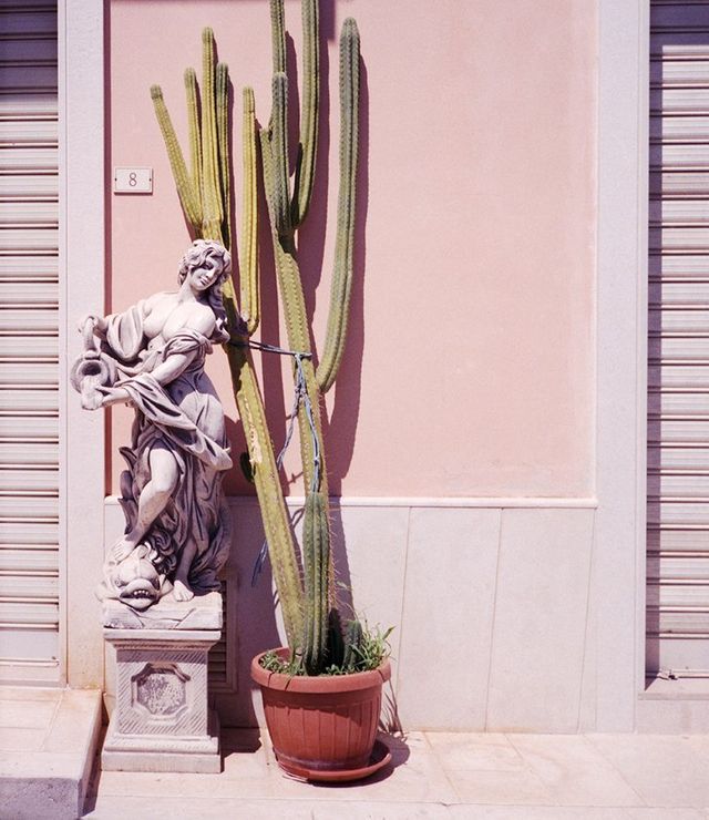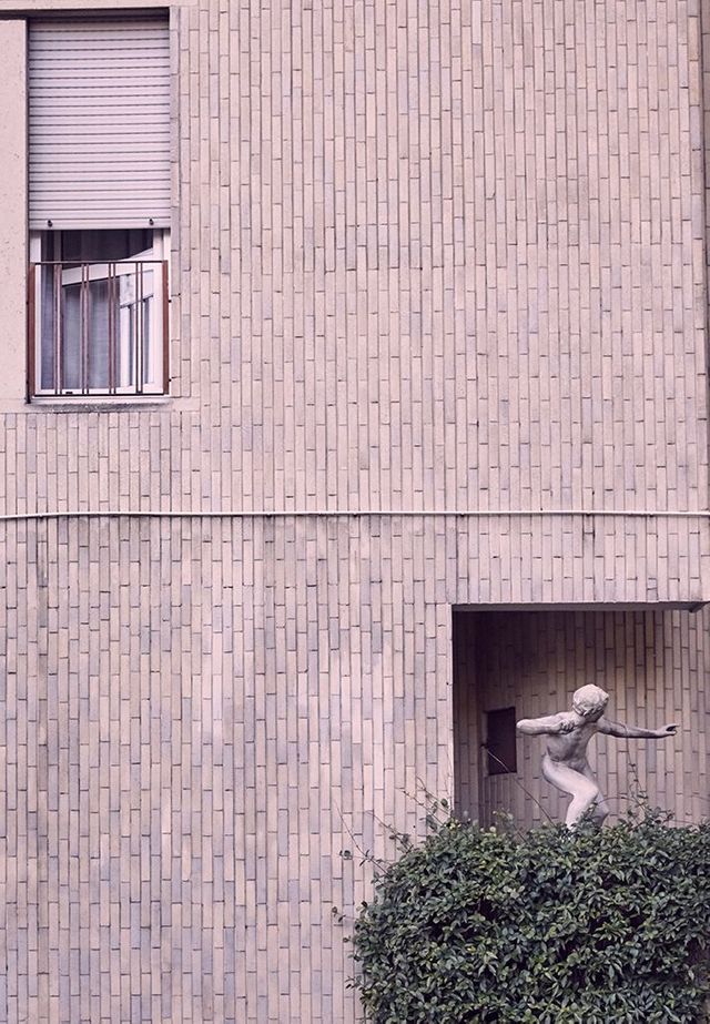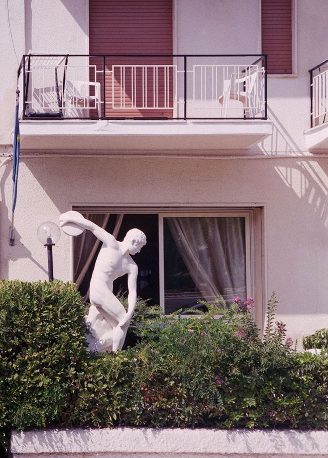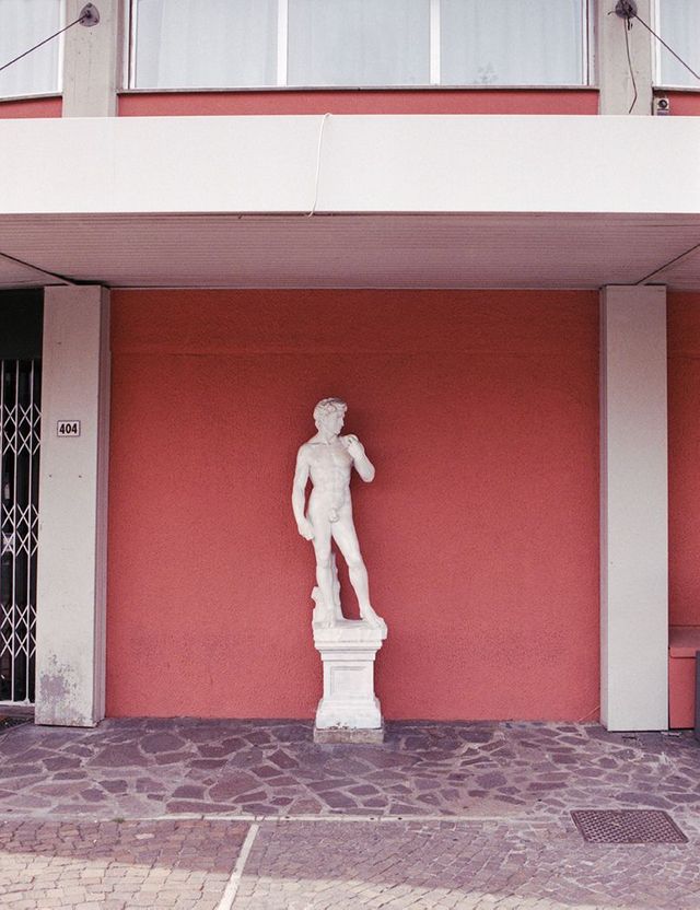 Eine Kopie des David von Michelangelo vor dem Eingang eines heruntergekommenen Hotels in Modena. Sie stand vor einer orangenen Wand, was das Bild perfekt machte. Der Kontrast zwischen dieser Hotelwand und der Statue – die vielleicht die bekannteste der Welt ist – war faszinierend. Außerdem erinnert mich die Farbe Orange an die 70er Jahre und Popkultur. An diesem Punkt wollte ich eine Serie daraus machen, ohne zu wissen, wo mich meine Reise hinführen würde.