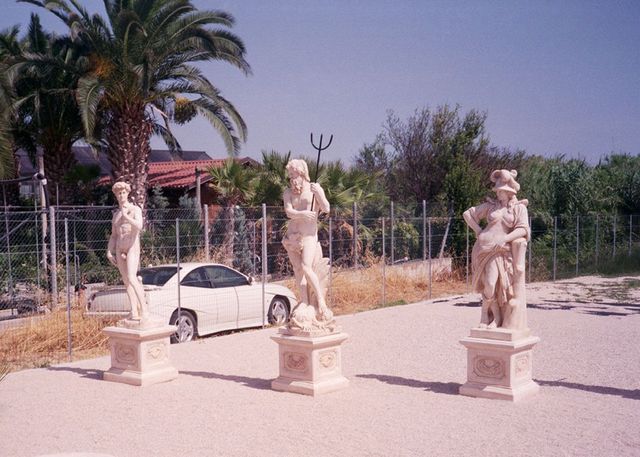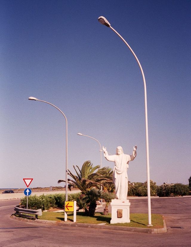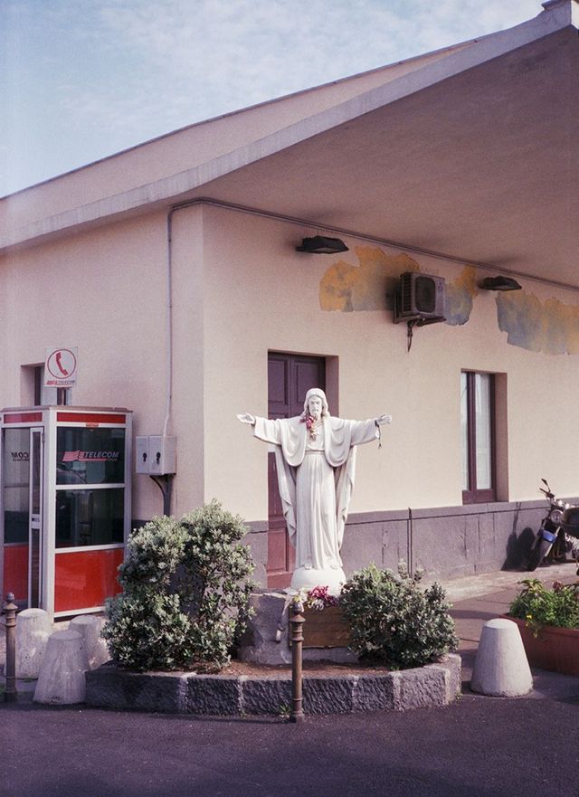Ich war schon immer Fan des Gegensatzes zwischen modern-populärer Alltagskultur und der Gegenwart von Antike und Spiritualität in Italien. Im ganzen Land sind private Gärten voll von verschiedenen Statuen, meistens stammen diese aus Massenproduktionen. Deshalb findet man klassische Kunstwerke wie den David oder andere antike Statuen überall. Aber auch religiöse Figuren, etwa Jesus Christus, stehen an Tankstellen oder auf Parkplätzen von Supermärkten.