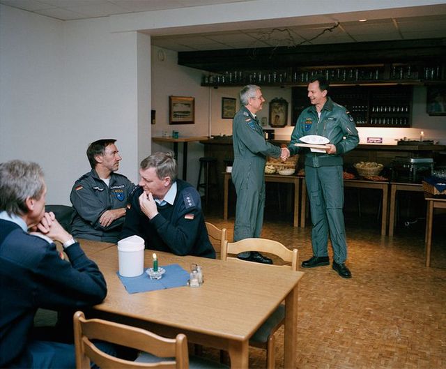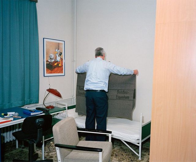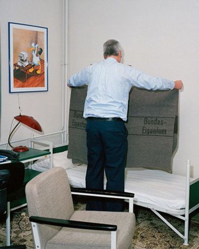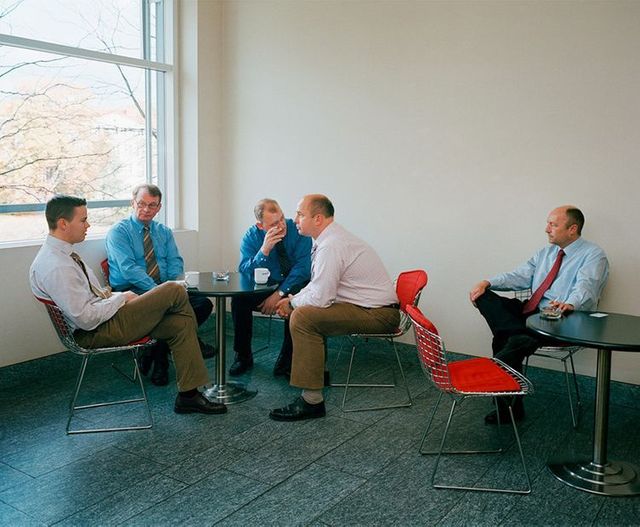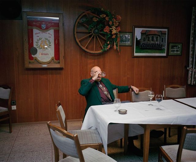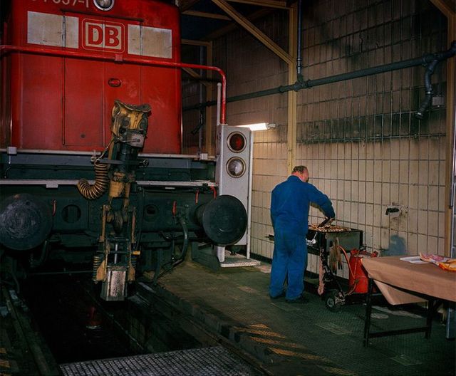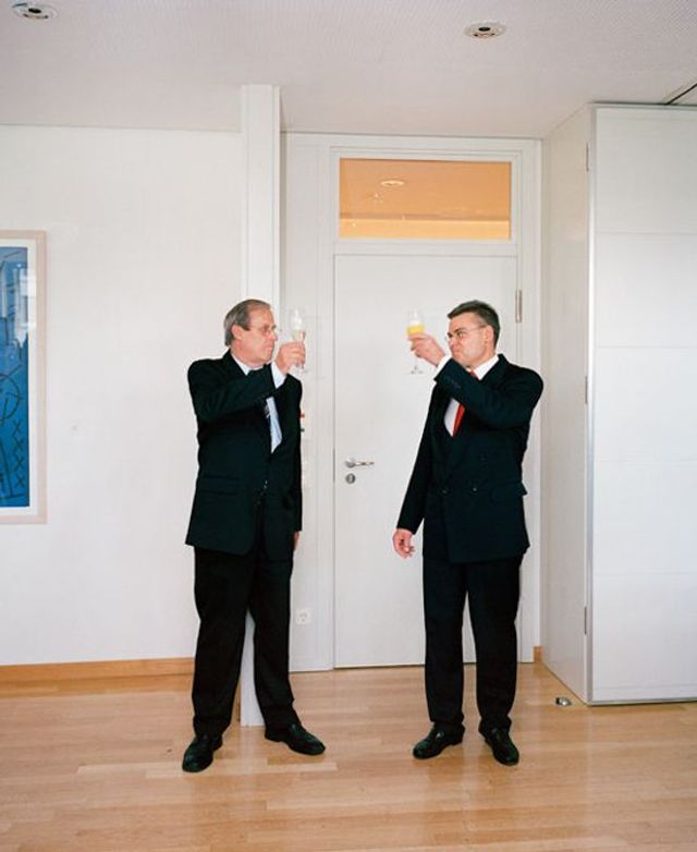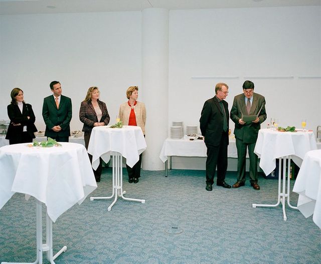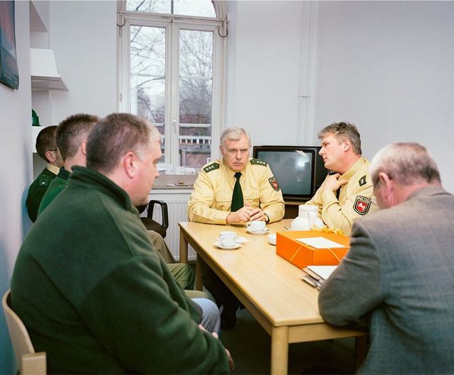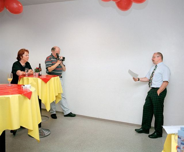 Ich habe mich mit allen Personen vor dem eigentlichen letzten Arbeitstag getroffen. So konnten wir uns kennenlernen, alle Fragen klären und so weiter. Das hatte den Vorteil, dass am letzten Arbeitstag, den ich dann fotografierte, schon Vertrauen aufgebaut war. Ohne das Vertrauen der Protagonisten ist eine solche Arbeit nicht realisierbar. Ich werde häufig gefragt, ob die Aufnahmen inszeniert sind. Ich antworte dann immer: Ja, das sind sie. Nur eben nicht von mir. Die Protagonisten durchlaufen in der Regel am letzten Arbeitstag ein betrieblich etabliertes Ritual. Die Feiern bzw. der Tag laufen nach bestimmten Mustern ab. Es werden Reden gehalten und Geschenke verteilt. Das Rituelle in unserer Gesellschaft finde ich interessant. Wir scheinen das zu brauchen. Die Rituale geben uns Sicherheit.
