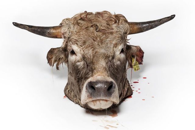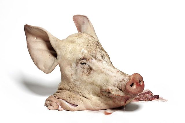 Bevor ich angefangen habe die eigentliche Strecke zu fotografieren, habe ich erst einmal einige Tage am Schlachtgeschehen teilgenommen. Ich war darauf vorbereitet, bei der ersten Konfrontation mit der Schlachtsituation die Kontrolle über meine Gefühle zu verlieren. Doch so war es nicht. Insgesamt waren es fünf Schlachthöfe, in denen ich fotografiert habe. Jeder ein bisschen anders. Der erste war ein kleiner familiärer Betrieb. Das war genau der richtige Weg für den Einstieg. Es ging alles sehr schnell und ich war ganz und gar mit dem Ablauf und den Fotos beschäftigt. Mit der Kamera als Schutzschild habe ich mitunter gar nicht mitbekommen, was um mich herum passierte. Erst am zweiten Schlachttag bemerkte ich Dinge, die ich beim ersten Mal nicht wahrgenommen hatte. Der Rausch ließ nach. Den Geruch der entleerten Schweinekorpusse konnte ich kaum ertragen. Die Körper hingegen, dann ausgeblutet an Haken, waren nicht schlimm. Eben der gewohnte Anblick von Fleisch.