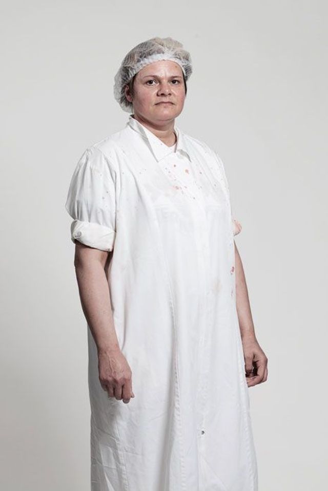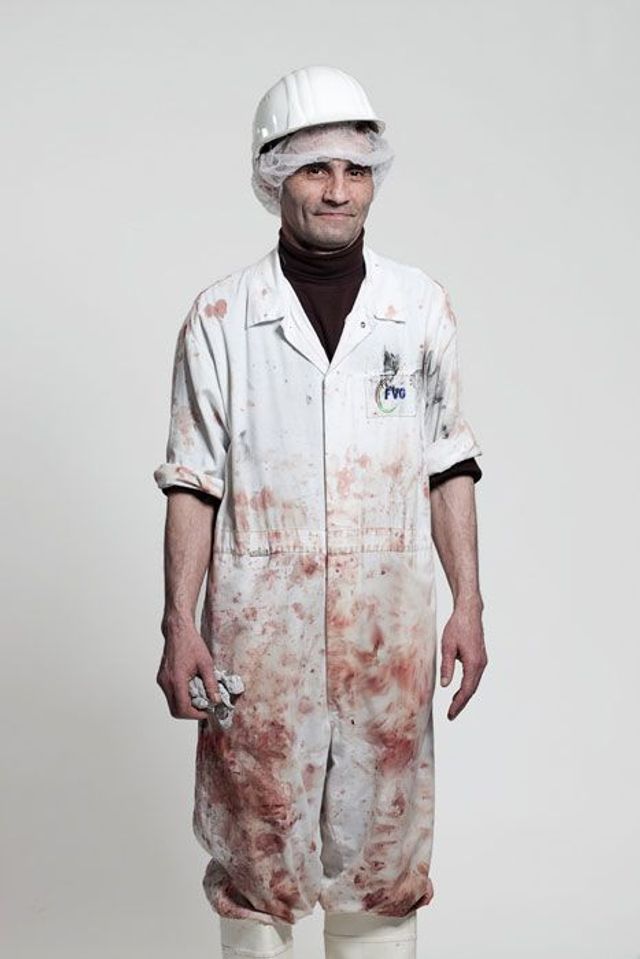 Ausführlich habe ich mich nur mit Leuten aus den beiden Schlachthöfen, in denen ich am häufigsten war, unterhalten. Also in dem ersten kleinen und einem recht großen. In dem großen war die Kommunikation in erster Linie nur mit den Veterinären oder leitenden Personen möglich, da die Arbeiter, die an der Schlachtlinie stehen, nur sehr wenig oder gar kein Deutsch sprechen. Die meisten kommen aus Osteutropa. Für Deutsche ist der geringe Verdienst an der Schlachtlinie nicht besonders reizvoll. Die Arbeiter sind meist nur für einige Monate dort beschäftigt und fahren dann wieder Heim. Es ist schwer einzuschätzen, ob sie sich authentisch verhalten haben, als ich dort war. Ich hatte aber das Gefühl, dass niemand das Geschehen zu nah an sich heranlässt. Für sie schien es ein Job zu sein wie jeder andere auch. Man stumpft ab. Das habe ich bei mir selbst sogar schon nach ein paar Tagen gemerkt.