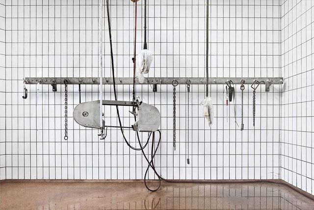Nein, es ist eine bewusste Entscheidung im Rahmen meines Projektes gewesen. Der Reiz der Arbeit bestand von Anfang an für mich darin, das Thema Schlachthöfe zu behandeln, ohne den eigentlichen Prozess des Schlachtens zu zeigen. Ich wollte das Umfeld des Geschehens visualisieren, ohne den moralischen Zeigefinger zu erheben. Bilder von Schlachtern mit Messern, die neben Schweinehälften in einer Blutlache stehen, sind genau das was man von einer Serie über Schlachthöfe erwartet. Ausserdem schrecken sie die meisten Menschen ab. Ich wollte aber nicht, dass sich die Menschen abwenden - egal, ob aus Gründen des Ekels, oder weil sie im Grunde gar nicht wissen wollen, wie das Fleisch, das sie essen, auf ihren Tisch kommt. Ausserdem wäre das auch nicht mein fotografischer Stil gewesen. Ich habe den Schlachthof immer nach der Reinigung fotografiert. So überlasse ich den Betrachter seiner Phantasie.