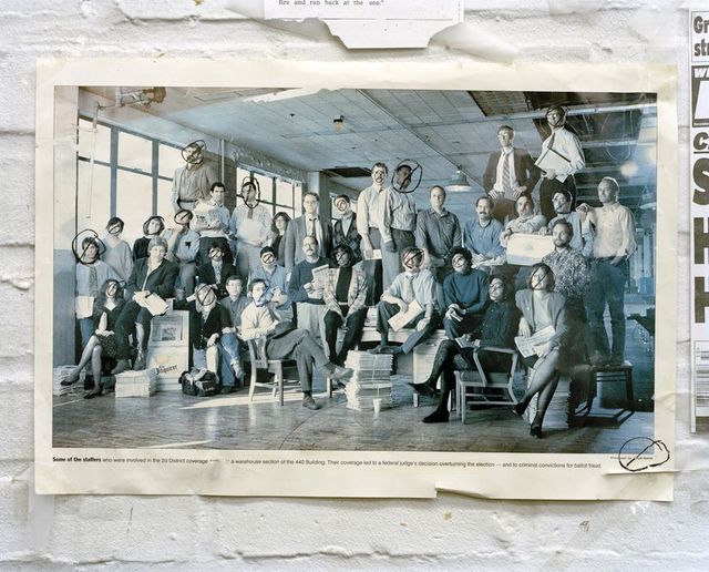 Auf dem Bild sind Journalisten zu sehen, die einen Wahlbetrug aufgedeckt hatten. Das war eine große Sache, die Wahl wurde für ungültig erklärt, es kam zu Verurteilungen wegen Wahlbetrugs. Dennoch haben nach und nach immer mehr dieser Journalisten die Zeitung verlassen und ich vermute, dass jemand die ausgeschiedenen Mitarbeiter durchgestrichen hat.