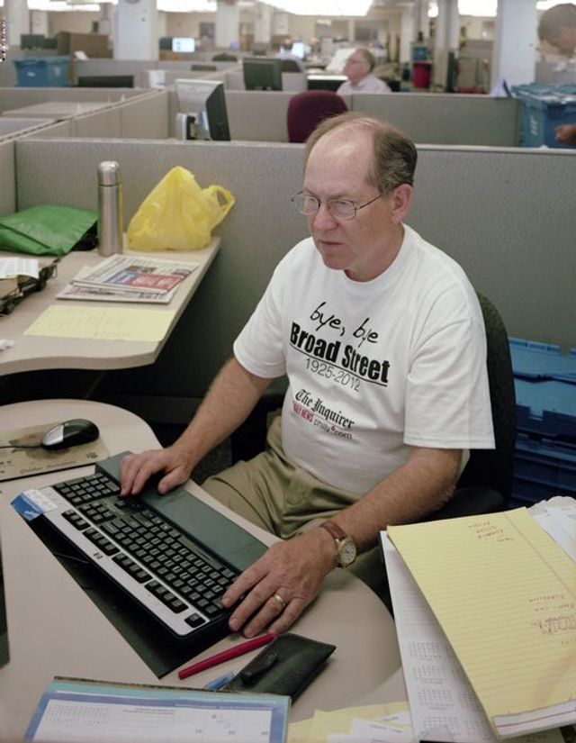 Will Steacy: Mein Vater hat 29 Jahre lang für den Philadelphia Inquirer gearbeitet, bis zu seiner Entlassung im Jahr 2011. Ich verbrachte sozusagen meine Kindheit in der Redaktion und war fasziniert von den Papierbergen und den Stapeln von Ordnern, die sich auf den Schreibtischen türmten. Für meinen Bruder und mich war es immer etwas Besonderes, wenn wir unseren Vater überreden konnten, uns mit in den Raum zu nehmen, in dem die Druckerpressen standen - immer mit dem Versprechen, dass wir nichts anfassen und unsere Kleider nicht mit Tinte verschmierten. Als ich mich 2009 dazu entschied die Zeitungsindustrie zu fotografieren, war also gleich klar, wohin ich mich wenden würde.