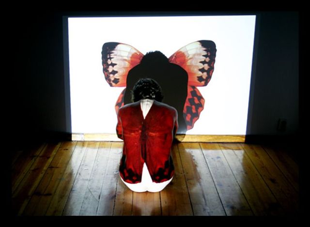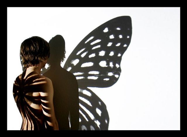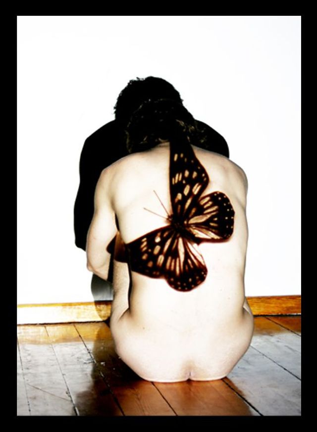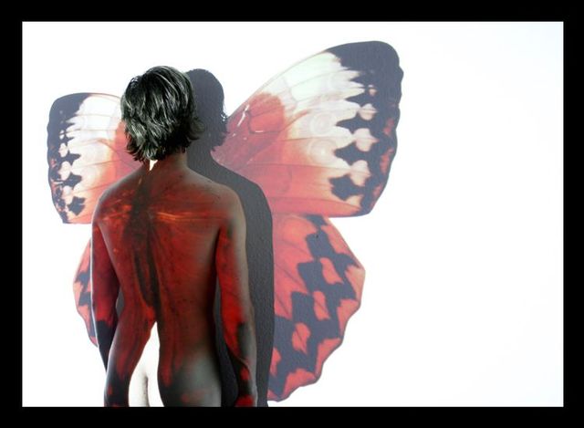 Julia Volkmar: Ich beschäftige mich schon seit einiger Zeit mit Metamorphosen. Inspiriert von Franz Kafkas Erzählung Die Verwandlung versuchte ich, den menschlichen Körper mit der Hülle eines Insekts zu verbinden. Statt des Kafka'schen Käfers nahm ich einen Schmetterling, der sich aus einer Raupe entwickelt und so eine noch viel drastischere Veränderung durchlebt.