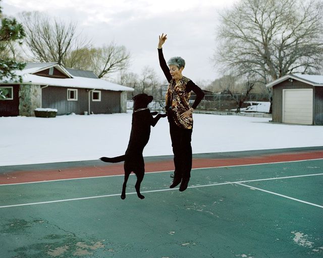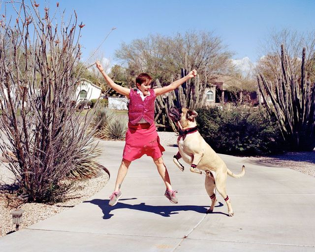 Das ist eine sehr schwierige Frage. Ich habe sehr viel Zeit mit jedem von ihnen verbracht. Es war unausweichlich, dass ich ein Teil von diesen Momenten wurde. Deshalb kann ich nur immer die Erfahrung hinter den Bildern bewerten. Ich würde mich aber vermutlich für das Bild von dem Ehepaar Sandy und Jerry mit ihren Hunden Bliss und Diva entscheiden. Sie sind seit 50 Jahren verheiratet und jetzt haben sie eine doppelte Choreographie mit ihren Hunden. Das ist so wundervoll. Sie haben so viele Kostüme. Und jedes einzelne passt perfekt.