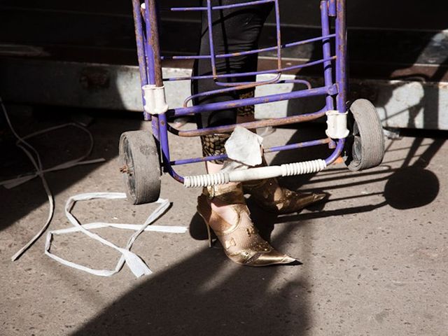 Das Bild mit den Frauenbeinen in goldenen Schuhen. Die Frau trägt solche Schuhe und zieht eine verrostete Karre – das beschreibt den Markt sehr gut, das Gegensätzliche, den postsowjetischen Kapitalismus. Man nennt diese Karren, die alle benutzen, Krawtschutschkas, nach dem ersten ukrainischen Präsidenten Leonid Krawtschuk, der die Ukraine für den freien Handel geöffnet hat.